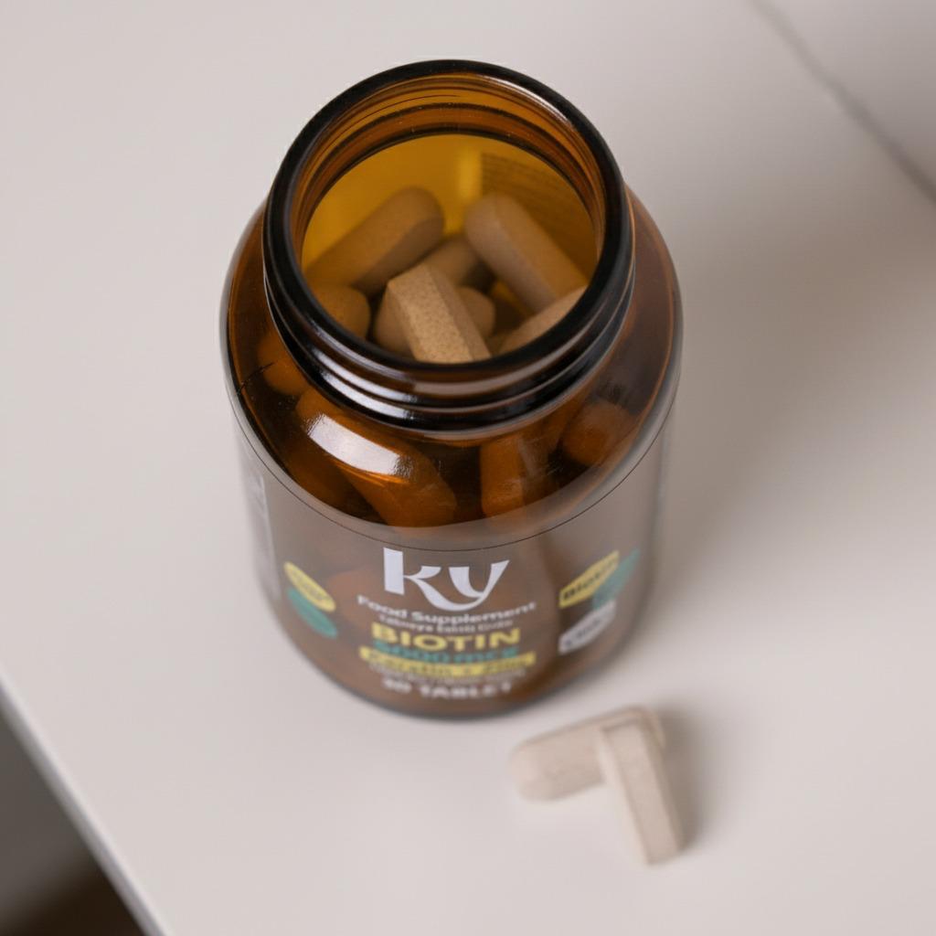 أقراص المكمل الغذائي الفعالة من كيوم تعمل على تعزيز صحة الشعر وتزيد من كثافته، كما أن لها دور فعال في معالجة حب الشباب، وزيادة متانة الشعر والأظافر لاحتوائها على فيتامين B7، والكيراتين والزنك. فيتامين B7 أو البيوتين هو عنصر أساسي في عملية تفكيك الدهون والكربوهيدرات والبروتينات التي يحصل عليها الجسم لتحقيق أكبر استفادة ممكنة منها.